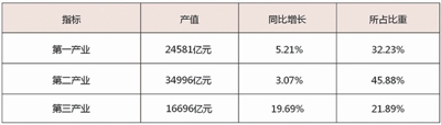 第三产业比重增加3个百分点