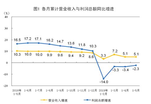 累计看,1—5月份规模以上工业企业利润同比下降2.3%,降幅比1—4月份收窄1.1个百分点。
