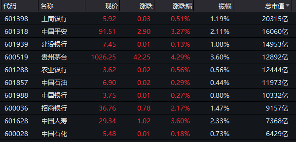 白酒股集体上涨,五粮液涨超5%,贵州茅台涨超4%,股价双双续创历史新高。截至中午收盘,贵州茅台股价涨4.29%,报1026.25元/股,续刷历史新高,总市值报12892亿元,一举超过农业银行、中国石油,上升至A股总市值排名第4位。