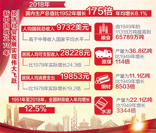 经济日报北京7月1日讯 (记者林火灿)国家统计局今日发布《沧桑巨变七十载 民族复兴铸辉煌——新中国成立70周年经济社会发展成就系列报告之一》。报告显示,新中国成立70周年以来,我国国民经济持续快速增长,经济总量连上新台阶。2018年我国人均国民总收入达到9732美元,高于中等收入国家平均水平。