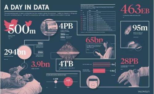 到2025年,全球每天预计会有463艾字节(EB)的数据产生,相当于每天产出相当于212765957张DVD碟。