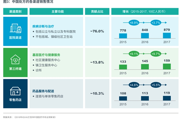 根据IQVIA艾昆纬的研究报告,2018年,我国药品市场(包括医院、零售端和第三终端)规模超过1.3万亿元。2015年至2018年,药品市场以约6.4%的年均复合增长率递增。