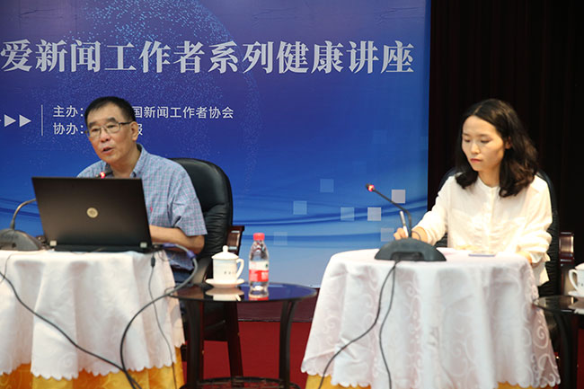 7月12日,中国记协与人民日报社健康时报共同在京举办第二期关爱新闻工作者系列健康讲座。北京急救中心急救专家贾大成现场讲解急救科普知识,来自中央主要新闻单位、全国性行业类媒体、全国性新闻社团等机构的新闻工作者代表百余人参加。
