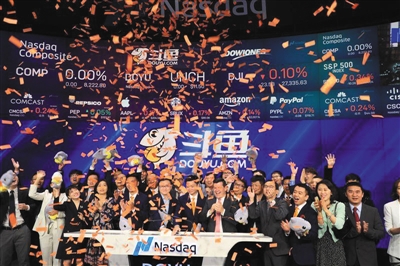 北京时间7月17日晚,游戏直播平台斗鱼登陆美国纳斯达克交易所。受访者供图