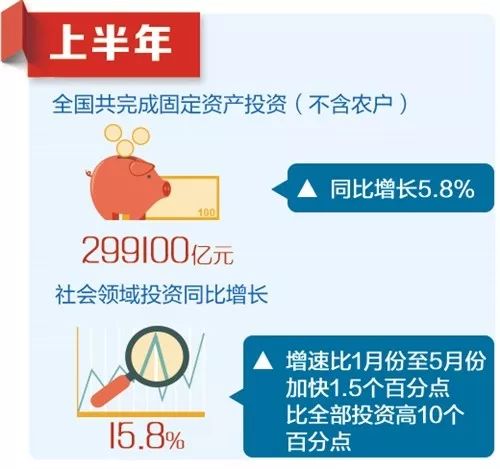 上半年,全国共完成固定资产投资(不含农户)299100亿元,同比增长5.8%,增速比1月份至5月份加快0.2个百分点。