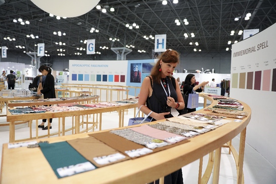7月22日,客商在美国纽约举行的第二十届中国纺织品服装贸易展览会上参观。