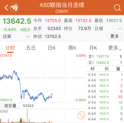 在德拉吉“没有就降息进行讨论”言论发出后,A50期指当月连续大跌,随后震荡收跌0.44%。