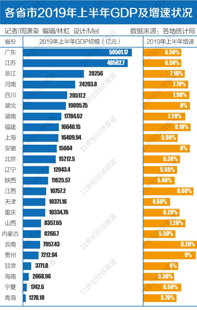 随着东部大省陆续官宣,2019年上半年各地经济运行状况大致出炉。