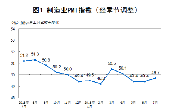 国家统计局31日公布数据显示,2019年7月份,中国制造业采购经理指数(PMI)为49.7%,比上月提高0.3个百分点,制造业景气水平有所回升。