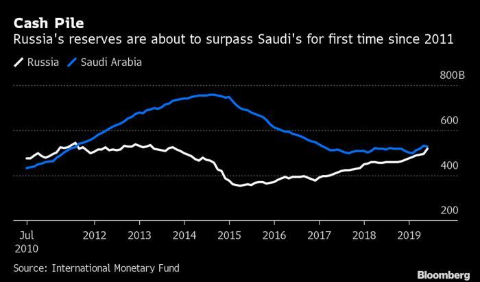 为了应对美国可能施加的更多的经济制裁,俄罗斯将继续增加外汇和黄金储备。八年来,俄罗斯央行的国际储备资产将首次超过沙特阿拉伯。
