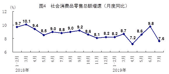 总的来看,7月份国民经济继续运行在合理区间,延续总体平稳发展态势。但也要看到,当前外部环境严峻复杂,国内经济下行压力加大,经济持续健康发展的基础还需巩固。下阶段,要坚持稳中求进工作总基调,坚持以供给侧结构性改革为主线,坚持新发展理念和推动高质量发展,坚持推进改革开放,坚持宏观政策要稳、微观政策要活、社会政策要托底的总体思路,统筹国内国际两个大局,统筹做好稳增长、促改革、调结构、惠民生、防风险、保稳定各项工作,增强忧患意识,把握长期大势,抓住主要矛盾,善于化危为机,办好自己的事,促进经济持续健康发展。