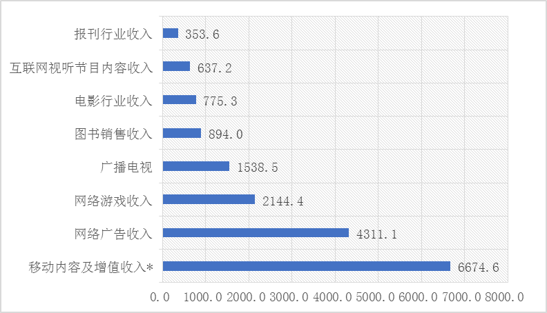 2018年中国传媒行业细分市场收入(单位:亿元)