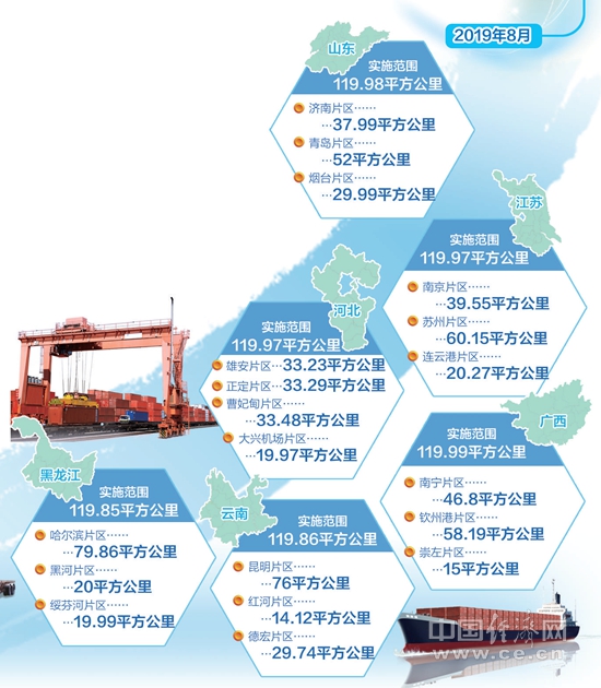 王受文表示,6个自贸试验区总体方案充分考虑党中央、国务院对自贸试验区的定位和要求,积极进行差别化探索,更好服务国家战略。山东主要是通过加快推进新旧动能接续转换、高质量推动海洋经济发展、深化中日韩区域经济合作,推动对外开放新高地建设。江苏将通过深化产业结构调整、深入实施创新驱动发展战略等,在打造开放型经济、创新发展实体经济和产业转型方面先行先试。广西将通过深化与东盟的开放合作、推动建设国际陆海贸易新通道、探索沿边地区开发开放等,形成21世纪海上丝绸之路和丝绸之路经济带有机衔接的重要门户。河北将主要围绕服务京津冀协同发展、高质量建设雄安新区、发展高端高新产业等,建设国际商贸物流重要枢纽、新型工业化基地、全球创新高地和开放发展先行区。云南将通过与越南、老挝、缅甸等周边国家合作发展,建设连接南亚东南亚大通道的重要节点,推动形成我国面向南亚东南亚辐射中心、开放前沿。黑龙江将通过推动东北全面振兴全方位振兴、着力深化产业结构调整、建设面向俄罗斯及东北亚的交通物流枢纽、提升沿边地区开放水平,打造对俄罗斯及东北亚区域合作的中心枢纽。