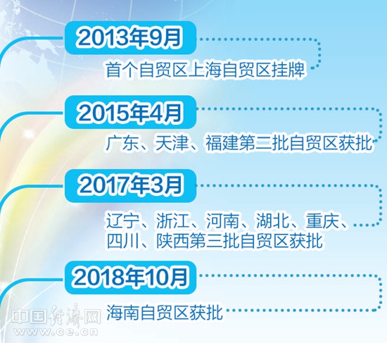 为全面深化改革和扩大开放探索新途径、积累新经验,从2013年自贸试验区工作启动以来,我国自贸试验区的建设布局逐步完善,形成了覆盖东西南北中的改革开放创新格局,在投资贸易自由化便利化、金融服务实体经济、政府职能转变等领域大胆探索。