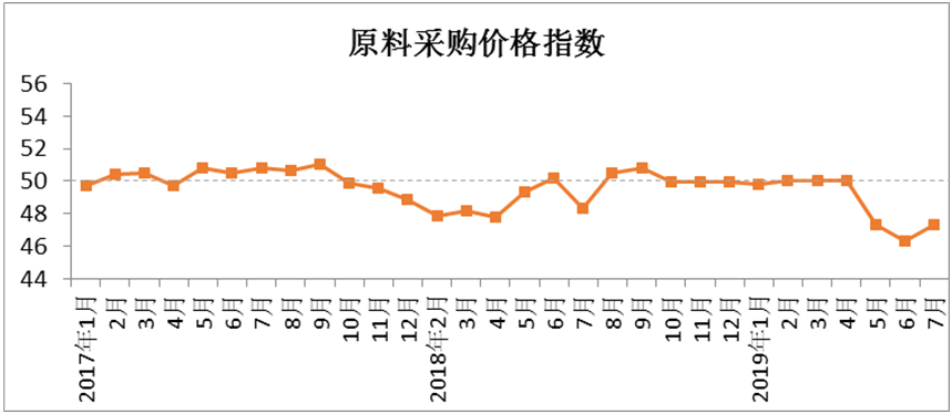 7月原料采购价格指数47.31,与6月相比增加1.04。7月,国内外棉价整体走势基本相同,均呈先升后降趋势。月初受宏观利好消息影响,国内外棉价小幅上涨,之后由于特朗普对中美贸易谈判的立场再度软化,市场观望情绪再现,纺企采购意愿不高,加上全球及国内棉花供大于求,价格受挫不断下降,国际棉价下跌幅度高于国内棉价。数据方面,CotlookA指数平均值75.54美分/磅,环比下降2.11美分/磅;国内3128B级棉花现货均价为13931元/吨,环比下降20元/吨。化纤短纤平均价格高于6月,7月初,中美贸易关系缓和,市场信心得到提振,粘胶厂报价上调,涤纶短纤在聚酯原料的带动下价格大幅上涨。虽然上涨时间维持较短,但由于涨幅较高,足以拉升全月平均值。7月,主流粘胶纤维均价为11853元/吨,环比增加553元/吨;1.4D直纺涤短均价为8112元/吨,环比增加562元/吨。8月,中美贸易局势再次紧张,原料价格维持7月下旬跌势,预计8月原料采购价格指数会有下降。