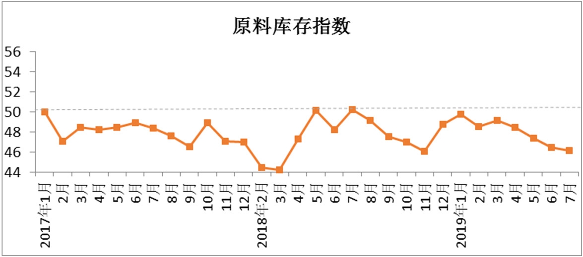 7月原料库存指数46.11,与6月相比下降0.29。跟踪企业数据显示,7月,企业原料库存环比下降2.56%。其中,原棉库存环比下降4.13%,进口棉库存环比增加0.38%,非棉纤维库存环比增加2.50%。主要原因: