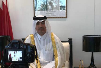 (卡塔尔驻华大使穆罕默德·杜希米接受现场采访)