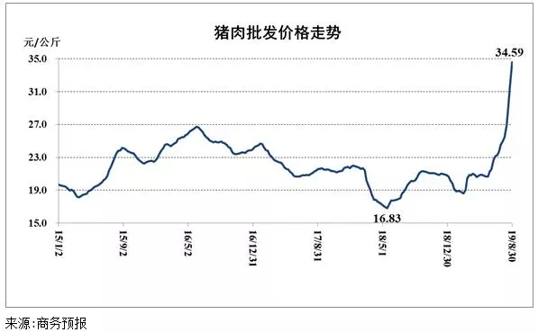 3日下午,商务部发布的最新数据显示,上周(8月26日至9月1日),猪肉批发价格为每公斤34.59元,涨幅为8.9%——这已经是猪肉批发价格连续第13周上涨。