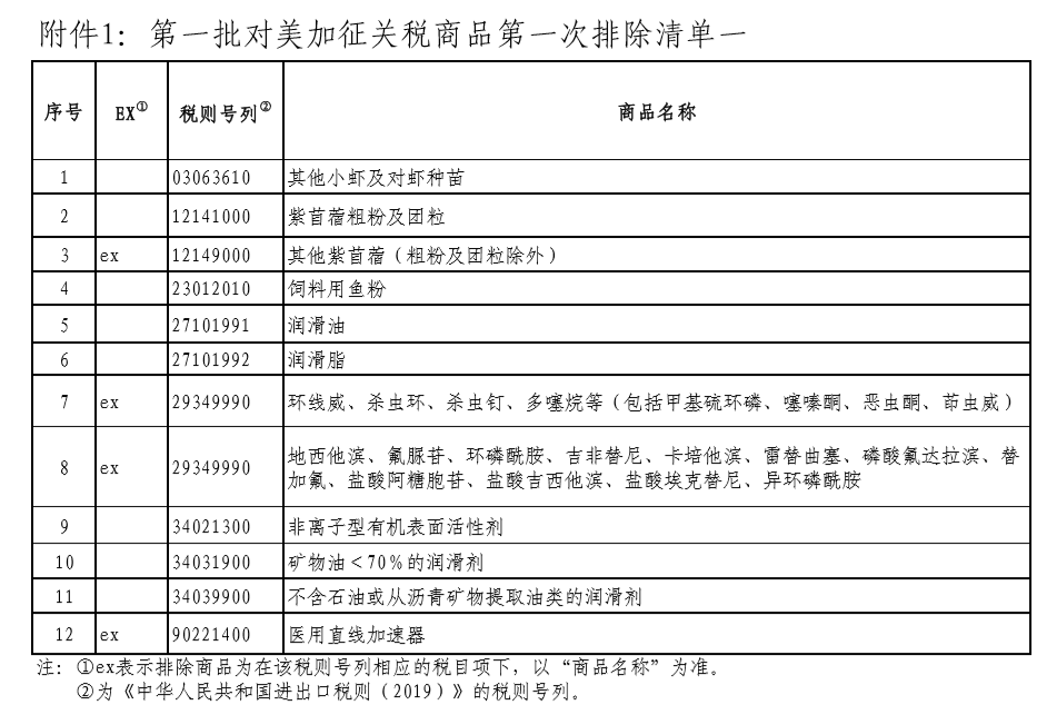 其中,清单一所列商品,自2019年9月17日至2020年9月16日,不再加征我为反制美301措施所加征的关税。对已加征的关税税款予以退还,相关进口企业应自排除清单公布之日起6个月内按规定向海关申请办理。