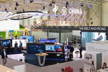 图为10日在匈牙利布达佩斯举行的国际电信联盟2019年世界电信展上,人们在华为公司的展厅参观。