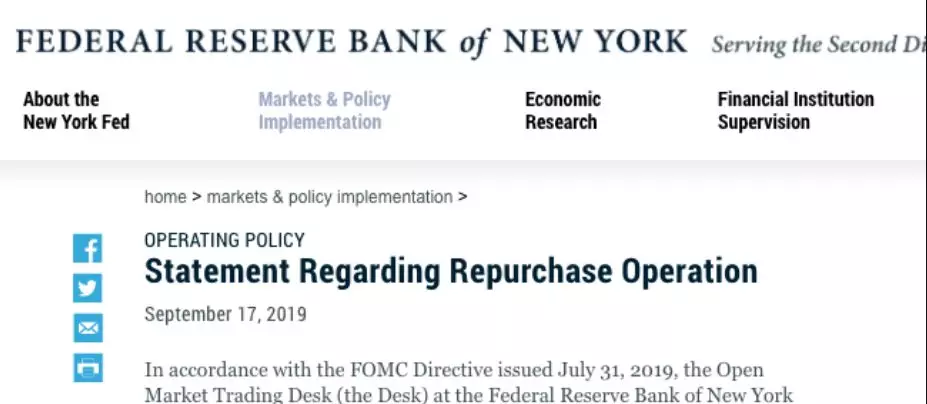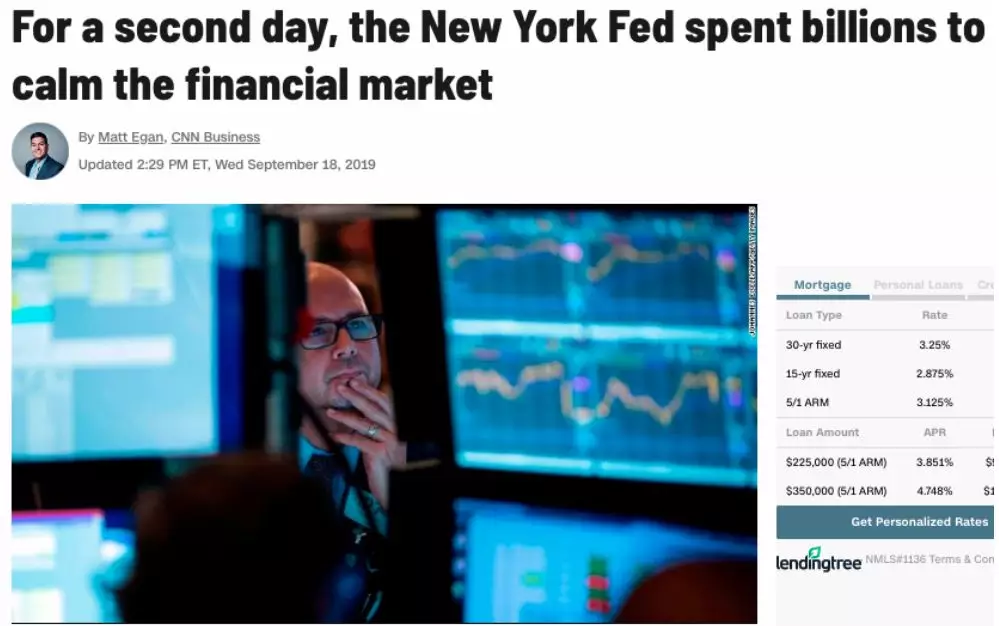 每日经济新闻(微信号:nbdnews)记者注意到,就在今天美联储降息前,纽约联储17日突然动用11年未曾使用的回购工具,向美国金融体系紧急注入数百亿美元的资金。原因是美国货币市场突然闹上了“钱荒”,回购市场上隔夜利率一度涨到10%。