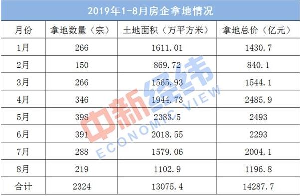 数据显示,今年1-8月份,房企拿地总价达14288亿元。分月份来看,自4月及5月达到高峰后,开始逐步回落,而房企8月份拿地总价与7月份相比下滑逾40%。