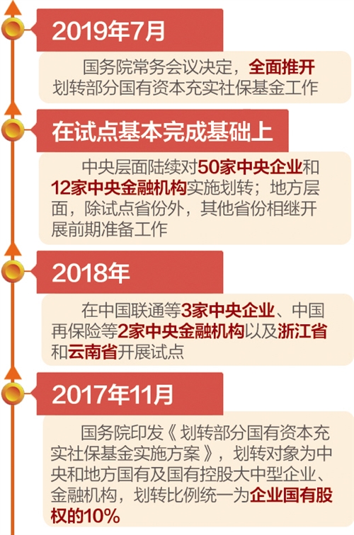 《通知》明确,中央和地方划转部分国有资本充实社保基金工作于2019年全面推开。其中:中央层面,具备条件的企业于2019年底前基本完成,确有难度的企业可于2020年底前完成,中央行政事业单位所办企业待集中统一监管改革完成后予以划转;地方层面,于2020年底前基本完成划转工作。