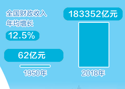 刘昆表示,第一,国家财政实力日益壮大。70年来,全国财政收入从1950年的62亿元增加到2018年的183352亿元,年均增长12.5%,增长了近3000倍。