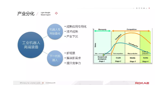 机器人行业最近比较火,但是并不特殊,产业发展的s曲线也同样适用。当领先者享受完技术和产品红利期,被竞争者赶上之后,竞争加剧。想要保证足够利润率,就必须要开拓新场景,解决新需求,推出新产品,进入下一个周期循环。
