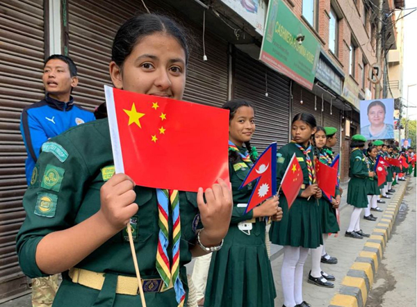 这一面面飘扬的旗帜、这一张张热情的笑脸,中印、中尼友好扑面而来。