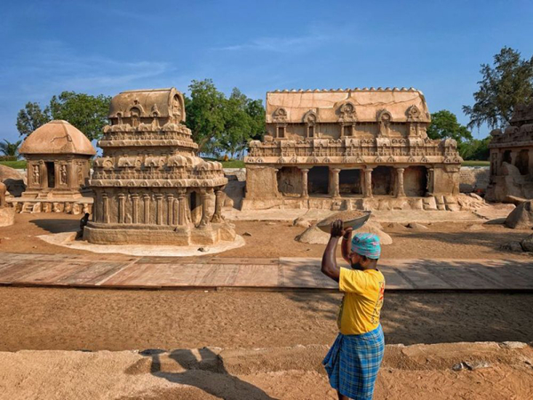 10月8日,印度工人正在五战车神庙为迎接习近平主席来访做准备。新华社记者申宏摄