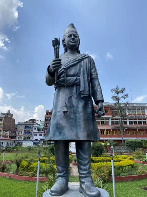尼泊尔帕坦市的阿尼哥雕像。阿尼哥是中国元代来华的知名工艺家,已成为尼中友好的代表人物。习近平主席也在署名文章中提到了他。新华社记者张文摄