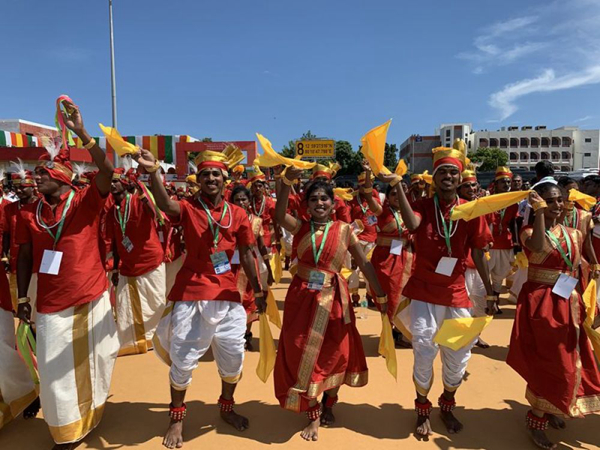 印度民众载歌载舞迎接习近平主席。新华社记者申宏摄