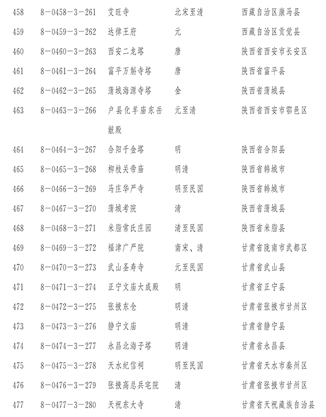 国务院核定文化和旅游部、国家文物局确定的第八批全国重点文物保护单位(共计762处)以及与现有全国重点文物保护单位合并的项目(共计50处),现予公布。