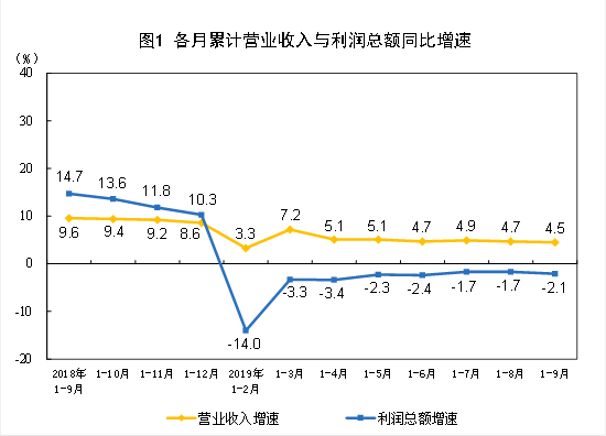 10月28日讯 据国家统计局网站昨日发布消息,2019年前三季度,全国规模以上工业企业实现利润总额45933.5亿元,同比下降2.1%。其中,一季度下降3.3%,二季度下降1.9%,三季度下降1.8%,同比降幅呈逐季收窄态势。