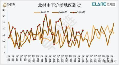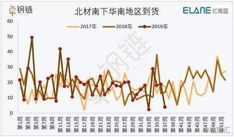 从广州地区库存情况来看,2019年华南地区北材南运的到货量已经低于往年。而由于华东地区需求较好,2019年华东地区北材南运的到货量较高,这也是杭州地区螺纹钢库存持续高位的原因。
