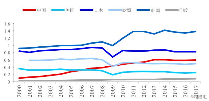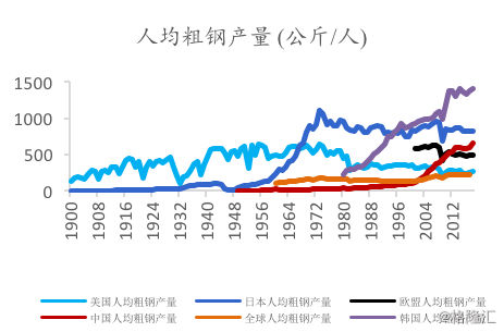 人均粗钢产量是衡量一个国家钢铁产业强弱的合理指标。