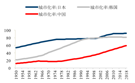 借鉴美、日、韩的城镇化进程,钢铁行业的发展均伴随着城镇化的不断推进。目前我国城镇化率保持相对低位,粗钢产量仍未见顶。