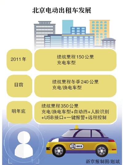 据介绍,2011年北京已启用新能源出租车,当时选用的是续航里程150公里的充电车型,“我们在多年运营中也总结了一些问题,从去年开始进行政策研究,今年大规模部署更换新能源电动车,目前已有千余辆新标识纯电动出租汽车上路运营,车辆的性能更好、续航里程更长。同时,还与车身配套设计了新顶灯和门饰标识。”市交通委出租租赁汽车管理处该负责人表示,到2020年底,北京要将到期报废的巡游出租汽车全部更换为纯电动车,数量近2万辆,超过北京出租车总数的20%。新一代新能源出租车续航里程能超过350公里。