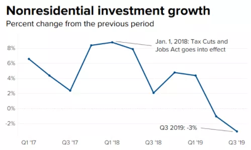 美联储连续降息,似乎提振了对利率敏感领域的家庭支出,如住房、汽车和家用电器等长期高价的商品,这有助于抵消由于全球增长和商业投资放缓和导致的制造业衰退。美国商务部10月29日发布的数据显示,今年第二季度美国制造业增加值占美国实际国内生产总值(GDP)的比重为11%,降至72年来新低。