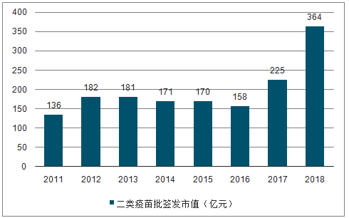 数据显示,2018年,我国二类疫苗批签发市值达364亿元,同比增长61.23%,其中EV71疫苗、HPV疫苗、13价肺炎结合疫苗、多联苗的批签发市值分别高达53.5亿、58.4亿、26.9亿、39.8亿元,占我国二类疫苗批签发总市值的49%。