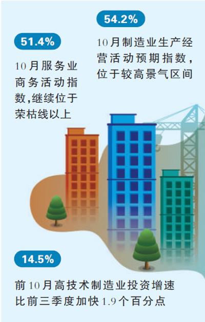 最后,稳就业政策发挥积极作用。10月份,全国城镇调查失业率从9月份的5.2%下降到5.1%,高校毕业生就业情况在逐步好转。