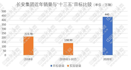 2016年4月26日,在2016中国汽车论坛的主题论坛上,长安汽车总裁助理、战略规划部部长谢世康说:"我们的目标(是)到2020(年),整个长安汽车(长安集团)是440万(辆)。其中,长安品牌是233万(辆),能够进入全球的前12位"……