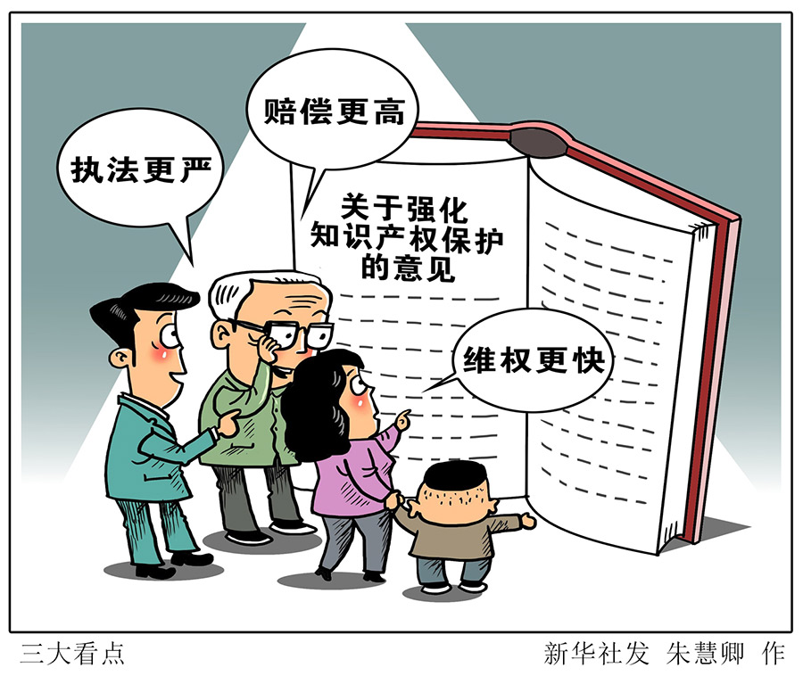 图表:执法更严、赔偿更高、维权更快——《关于强化知识产权保护的意见》三大看点 新华社记者 陈琛 编制