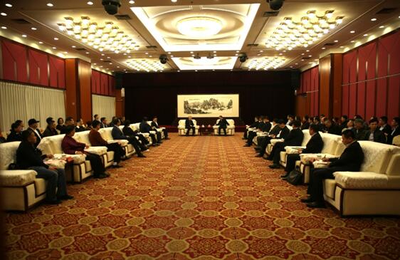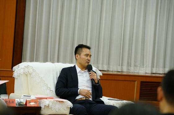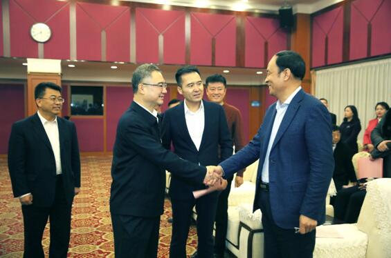 市长助学公益基金执行主任、百城市长公益论坛理事会秘书长乔琦向王清宪书记介绍与会代表