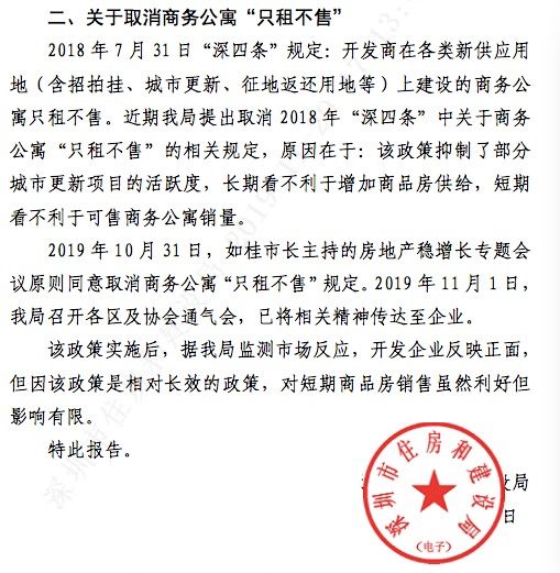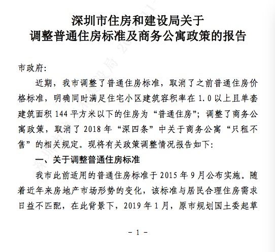 11日,一份名为《深圳市住房和建设局关于调整普通住房标准及商务公寓政策的报告》的文件已在网上流传。