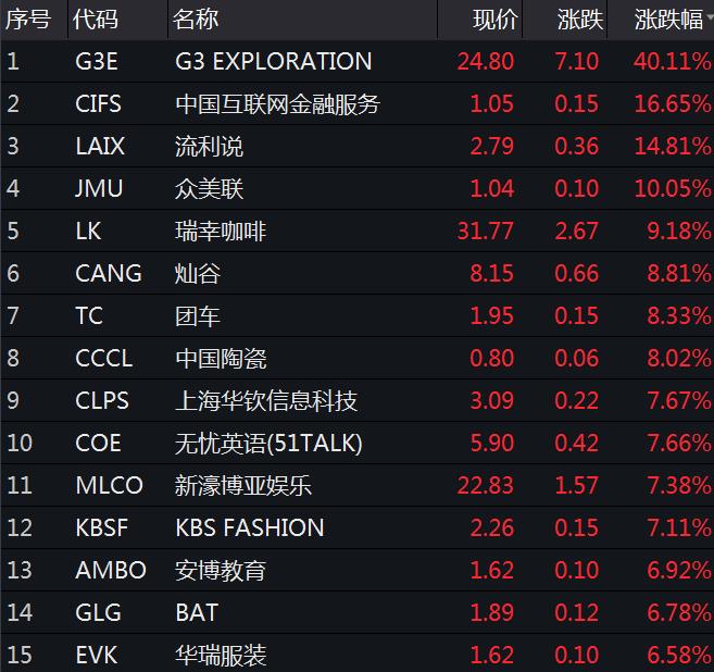 中概股涨幅榜。来源:Wind