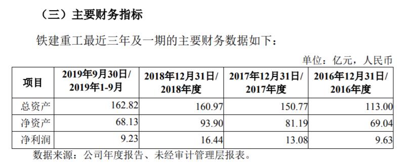 根据此前年报,中国铁建2018年归属于公司股东的净利润约为179.35亿元,铁建重工同期净利润约为16.44亿元,不超过“50%”的比例;中国铁建2018年归属于公司股东的净资产约为1698.90亿元,铁建重工同期净资产约为93.90亿元,不超过“30%”的比例。