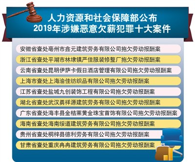 更严重的恶意欠薪则可能触犯刑法。2011年,刑法修正案将“恶意欠薪”正式列罪,“拒不支付劳动者报酬”被纳入刑法调整范围。2011年至2019年9月,人社部门共向公安机关移送涉嫌拒不支付劳动报酬罪案件2.6万余件,各级人民法院对7674名被告人判处拘役或有期徒刑,有116人被判处3年以上有期徒刑。