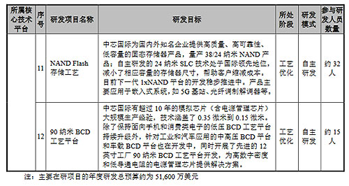 公司目前主要在研项目12个,包括先进和成熟工艺制程、特色工艺制程的现有项目升级工作和新产品研发项目,具体情况如下: